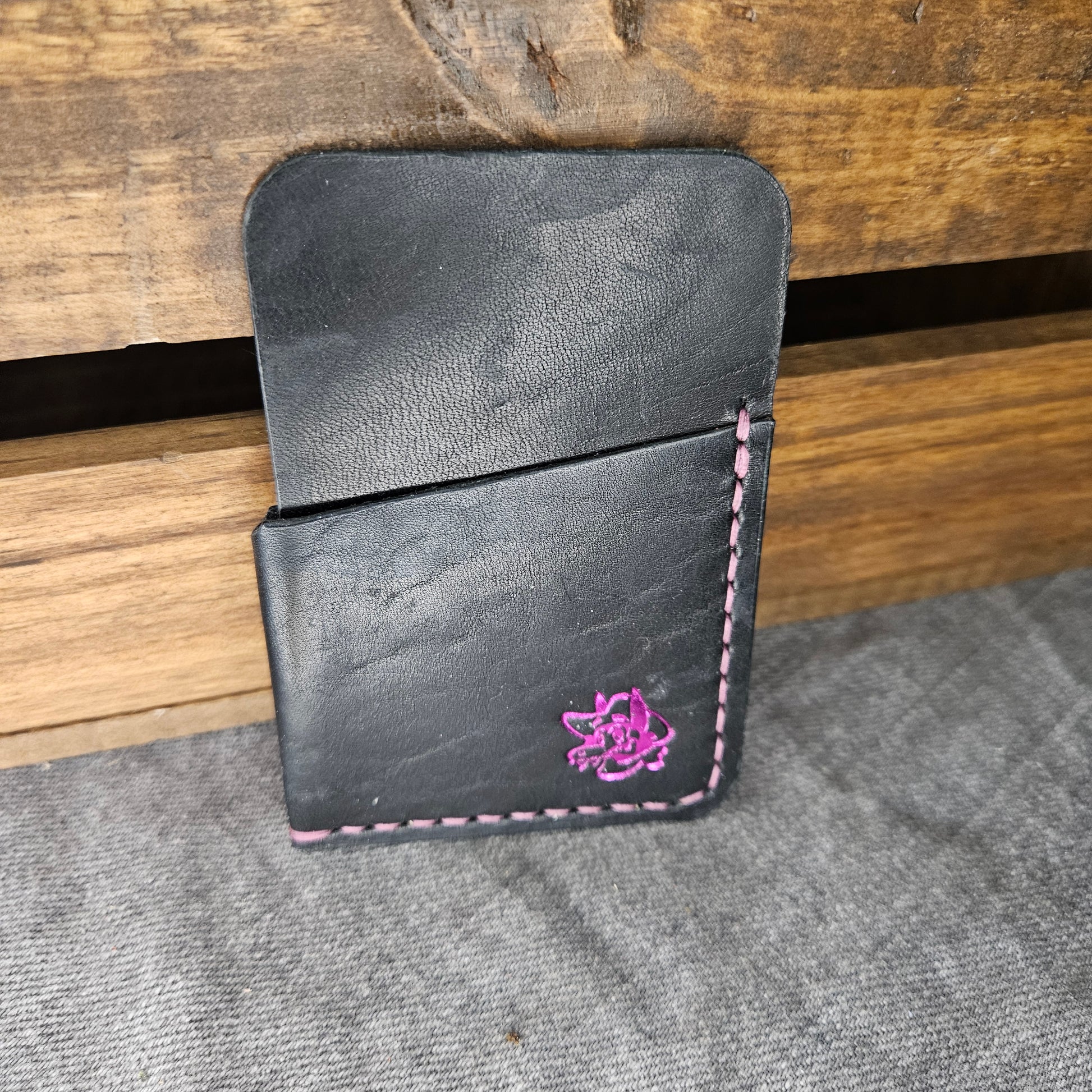 Black w/ Fuchsia Stitching Wrap Wallet