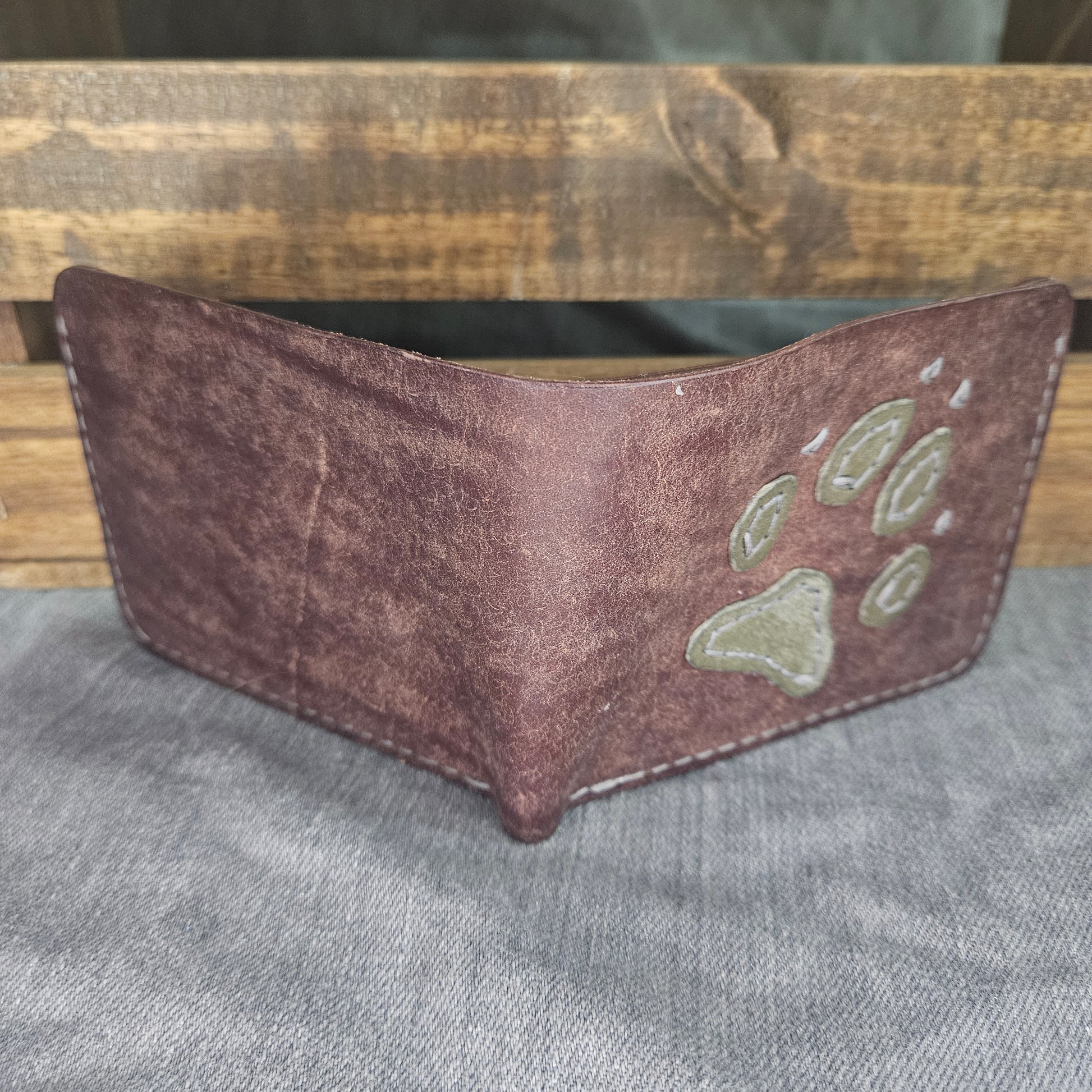 This handmade and handstitched wallet features 8 different card slots (6 slots with 2 hidden slots underneath the visible slots) and a place to put your bills!